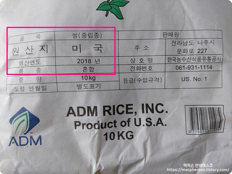 쌀의 품종은 혼합입니다. 혼합이라 하면 사실 단일품종에 비해서 한수아래로 쳐줍니다. 사실 이러한 정보를 모르고 마트에서 20kg 한 포대에 5만 원 초반의 가장 저렴한 쌀을 구매하셨다면 대부분 혼합이라고 적혀있는 걸 볼 수 있을 겁니다.